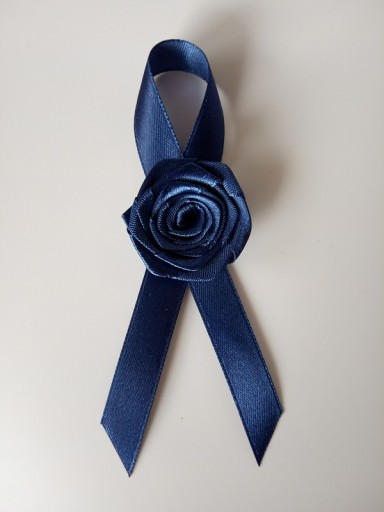 Ozdoba wykonana jest z satynowej różyczki i wstążki.