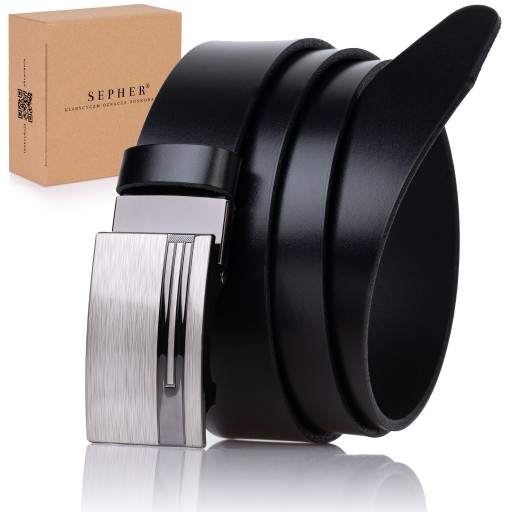 Pasek jest elementem kolekcji SEPHER Automatic. Ma szerokość 3,4cm, czyli pasuje do szlufek wszystkich spodni garnituru oraz typu jeans. Pasek posiada charakterystyczną, automatyczną klamrę. Wycięty został z jednego płatu naturalnej skóry, która charakteryzuje się wysoką jakością. Świetnie sprawdzi się jako outfit do pracy, uroczystość rodzinną, czy wieczorną imprezę.