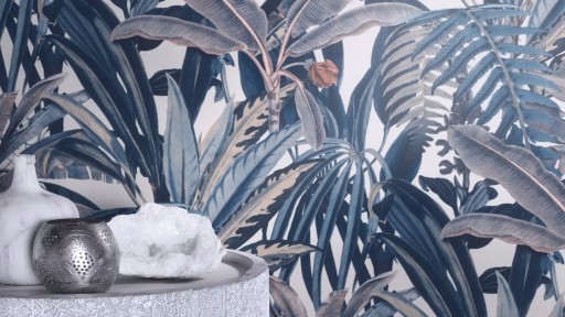 Синие узоры, ЛИСТЬЯ-ОБОИ на Флизелин-Раш