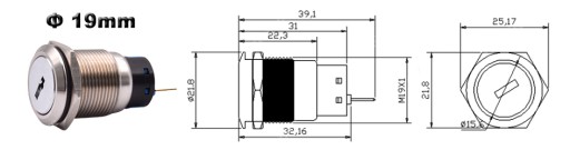Бистабильный переключатель с ключом 19 мм