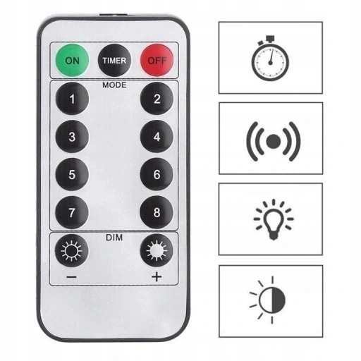 Kurtyna świetlna jest zaopatrzona w bezprzewodowy pilot zdalnego sterowania, dlatego od teraz nie będziesz musiał podchodzić do lampek LED, aby je ustawić. Dzięki pilotowi obsługa kurtyny będzie bardzo komfortowa i przyjemna.