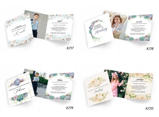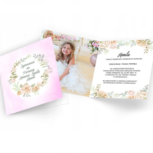 Zaproszenia na Pierwszą Komunię Świętą wraz ze zdjęciem oraz pełną personalizacją