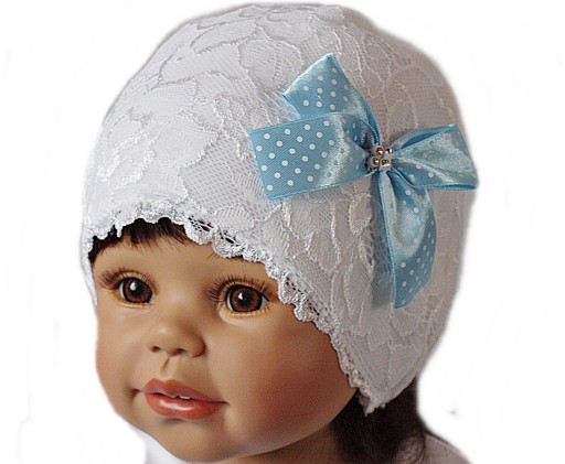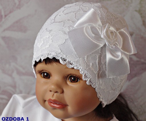 Mamy zaszczyt zaprezentować Państwu śliczną czapeczkę do chrztu. Czapeczka pochodzi z naszej pracowni i wykonana jest z białej koronki podszytej mięciutkim białym polarkiem. Z tyłu wszyta jest gumeczka więc bardzo łatwo dopasowuje się do główki dziecka. Czapeczka w całości wygląda bardzo szykownie.
