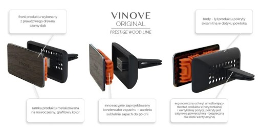 VINOVE jest nową marką perfum samochodowych, stworzonych przez polskich pasjonatów we współpracy z francuskimi mistrzami sztuki perfumeryjnej i włoskimi projektantami oraz naukowcami. VINOVE to ekskluzywne perfumy samochodowe. Do produkcji perfum samochodowych VINOVE zastosowano technologię XXI wieku. Wykorzystano wiedzę, otwartość i doświadczenie zespołu naukowców i wspólnie z nimi skondensowano zapachy w nowatorskim polimerze. Ich kształt jest tak skonstruowany, by powietrze z wywietrzników samochodowych delikatnie opływało polimerowy labirynt, uwalniając zapach subtelnie i długotrwale – aż do 90 dni. Projektując nośnik zapachu wzięto pod uwagę przede wszystkim jego walory użytkowe: długotrwałość uwalniania zapachu, bezpieczeństwo dla tapicerki i kokpitu samochodu, a także ekskluzywny wygląd, współgrający ze stylistyką nowoczesnych aut.