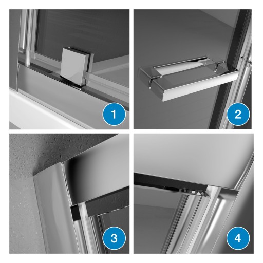- Chromowane detale - mosiężne chromowane detale, spotykane tylko w drogich kabinach, nadają kabinom z kolekcji Twist ekskluzywnego charakteru.