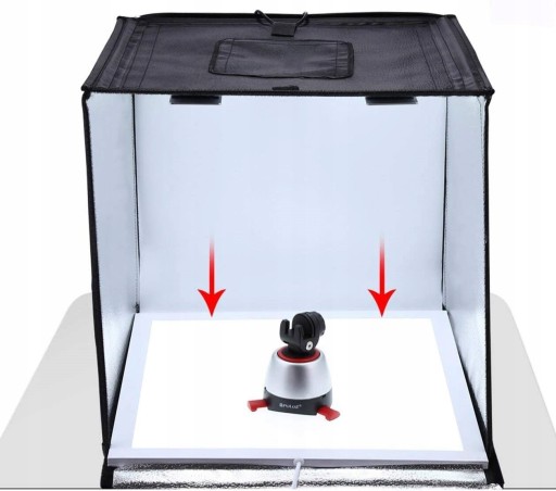Dwie listwy o łącznej mocy 60W mocowane są wewnątrz konstrukcji i zapewniają światło o barwie 5500K. W połączeniu ze srebrnym, odblaskowym wnętrzem namiotu oraz sterownikiem odpowiedzialnym za regulację natężenia światła, stwarzają idealne warunki do fotografowania.