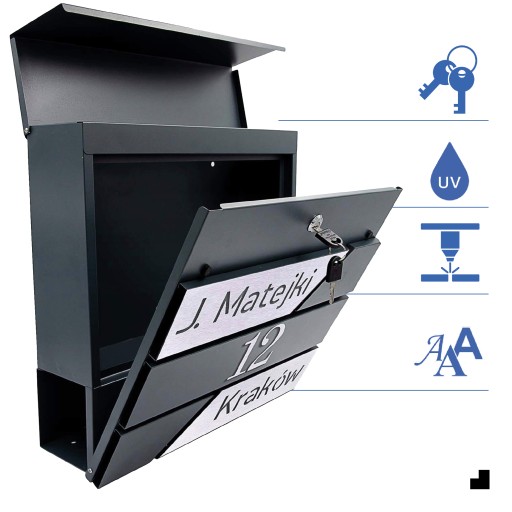 БОЛЬШОЙ ПОЧТОВЫЙ ЯЩИК С АДРЕСОМ И НОМЕРОМ ДОМА | СЕРБАНСКИЙ АНТРАЦИТ RAL 7016