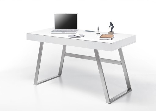 Biurko, 3 szufl., lakier biały mat, nogi metalowe optyka stali szlachetnej