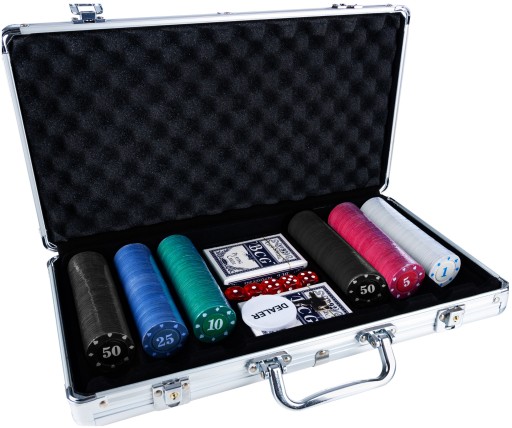 ✅ Profesjonalny, solidnie wykonany zestaw do gry w pokera lub kości. Z dwiema taliami kart, kompletem kości i 300 żetonami do gry, zapakowany w elegancką walizkę.
