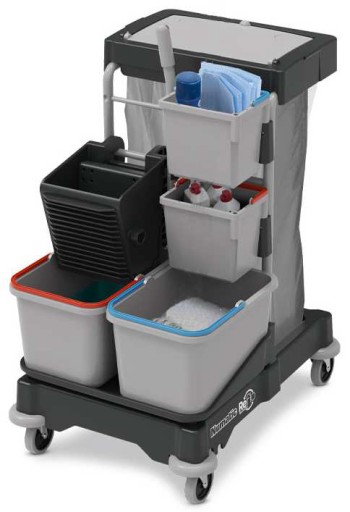 Wózek serwisowy, osadzony na sztywnej platformie z kołami. Idealny do czyszczenia mniejszych i średniego rozmiaru budynków/pomieszczeń.