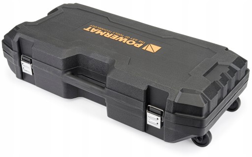 Dzięki bardzo solidnej walizce na kółkach transport całego zestawu jest znacznie ułatwiony. Walizka dodatkowo została zaopatrzona w dwa uchwyty (do przenoszenia walizkę w poziomie oraz do ciągnięcia po ziemi na kółkach w pionie) co dodatkowo zwiększa jej mobilność w trakcie transportu. Dla najlepszego zabezpieczenia zawartości, walizka posiada dwa metalowe zatrzaski klamrowe. Walizka pełni również funkcję organizera na narzędzia.
