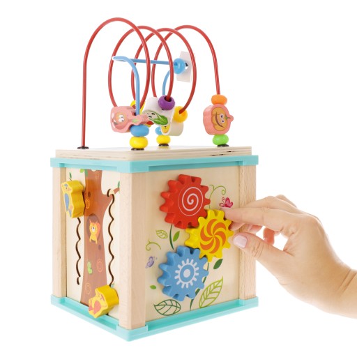 Ta wyjątkowa zabawka z pewnością przypadnie do gustu każdemu maluchowi. Mnogość kolorów oraz funkcji przyciągnie uwagę, oraz zajmie pociechę na długi czas. Akcesorium w kształcie kostki to zabawka, która nie tylko sprawi, że na buzi dziecka pojawi się ogromny uśmiech. Dzięki niej może nauczyć się kolorów i kształtów. Ponadto pozwoli rozwinąć umiejętności ruchowo-wzrokowe, a także pobudzi wyobraźnię.