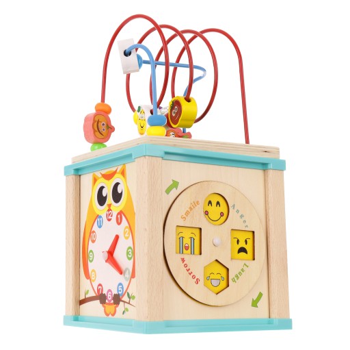 Zabawka charakteryzuje się wieloma ciekawymi elementami, takimi jak ruchome zębatki, zegar z sową, różnego rodzaju suwaki oraz obrotowe koło z emocjami. Będzie to fantastyczny prezent zarówno dla dziewczynki, jak i chłopca. Spraw radość swojemu maluchowi!