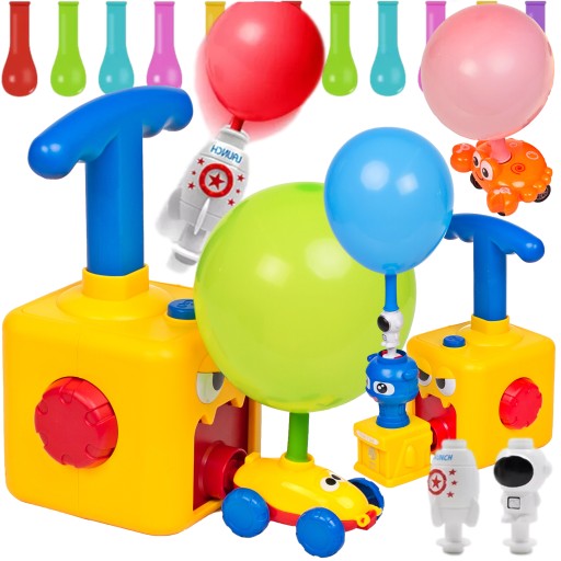 Zabawa wyrzutnią jest bardzo prosta, wystarczy zamontować tłok na kwadratowej kostce, zamocować balonik np. w autku i wykonać parę ruchów tłokiem. Balonik się napompuje i co za tym idzie: autko pojedzie, kosmonauta, rakieta poleci. Super pomysł na atrakcyjną zabawę.