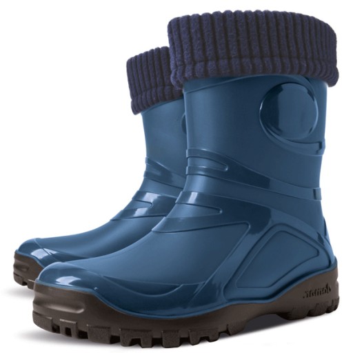 Polskie kalosze damskie i młodzieżowe ocieplane, zimowe z wełnianym ciepłym ocieplaczem DEMAR YOUNG 2 FUR - Granatowe