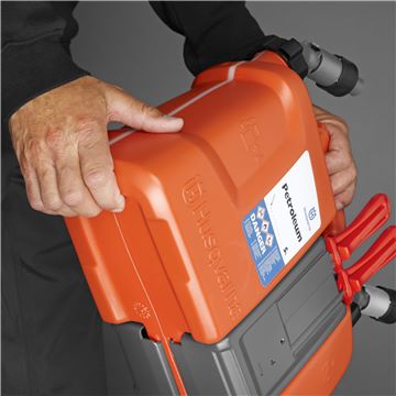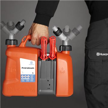 Kanister Husqvarna Combi pozwala szybko uzupełnić paliwo bez rozchlapywania i rozlewania. Ponadto dostosowaliśmy rozmiar obu pojemników, osiągając optymalny stosunek ilości paliwa do ilości oleju (5.0 / 2.5 l). Nowy kanister Combi wyposażony jest również w ulepszone przegrody na narzędzia i najpotrzebniejsze części zamienne, co pozwala uniknąć przestojów w pracy. Zatwierdzony zgodnie z zaleceniami ONZ.