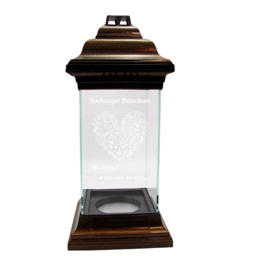 Znicz kapliczka z grawerem to niezwykły i oryginalny produkt, na którym można umieścić dowolną dedykację. Jest trwały i solidnie wykonany. Grawer na szkle jest odporny na warunki atmosferyczne. Można stosować wkłady tradycyjne oraz LED.