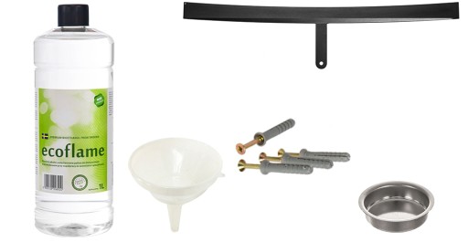 W zestawie są kołki rozporowe (do ścian murowanych), wystarczy na kołkach zawiesić biokominek.