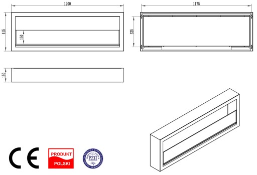 Wymiary: szer. 1200mm / wys. 415mm / gł. 150mm;