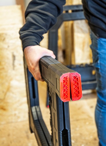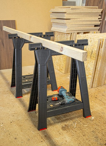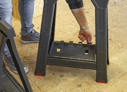Qbrick System Kobyłka Budowlana to wysokiej jakości stojak roboczy o wzmocnionej konstrukcji. Antypoślizgowe nóżki zapobiegają wibracjom i przemieszczaniu się stojaka podczas użytkowania. Dodatkowa półka między nogami zapewnia stabilizację oraz posiada dodatkowe uchwyty na narzędzia ręczne. Stojak warsztatowy zawiera funkcjonalne szczeliny stabilizujące do cięcia materiałów. Odpowiednia konstrukcja pozwola na trwałe zamocowanie ścisków stolarskich.