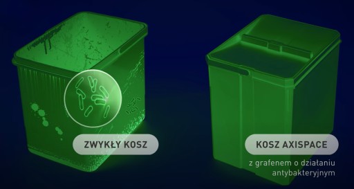 Kosze AXISPACE są wykonane z cząsteczek GRAFENU - jest to nanomateriał utworzony z węgla o działaniu antybakteryjnym i antygrzybicznym.