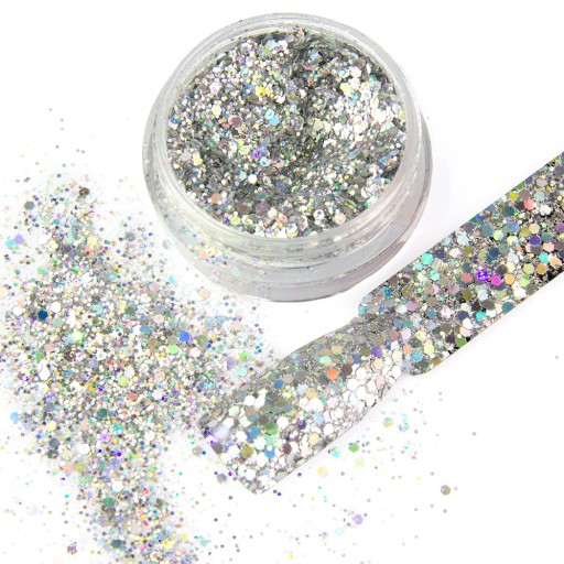 Wysmakowane dopełnienie Twojego manicure w stylu glamour! Biżuteryjny kolor laserowego srebra w holograficznym wydaniu. Idealne dopełnienie stylizacji w każdym kolorze. Wyraź siebie i eksponuj ekspresyjny look! Migoczące dodatki to genialny pomysł na każdą okazję.