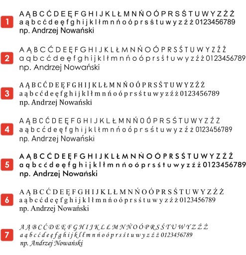 - W przypadku braku informacji odnośnie układu tekstu zamówienie zostanie wykonane zgodnie ze standardami.