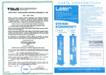 Kupując u nas otrzymają Państwo pisemną 30 letnią gwarancję, podstemplowana również przez producenta. Gwarancją wystawiana jest tylko do kompletnych i oryginalnych systemów kominowych.