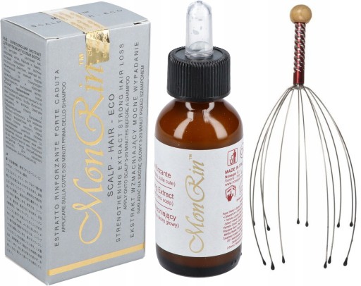 Ekstrakt MonRin zawiera bardzo dużą ilość naturalnych ekstraktów pochodzenia roślinnego, dzięki czemu skutecznie hamuje nadmiernemu wypadaniu włosów oraz pobudza nowe mieszki włosowe do wzrostu.
