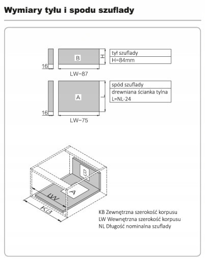 Na tej aukcji dostępna jest szuflada o wysokości 84 i długości 450 mm. Szybki montaż i demontaż szuflady, bez użycia narzędzi oraz wygodna regulacja frontu. Soft Close dla cichego i delikatnego domykania szuflad Dostosowane do grubości ścianek korpusu 18 mm.