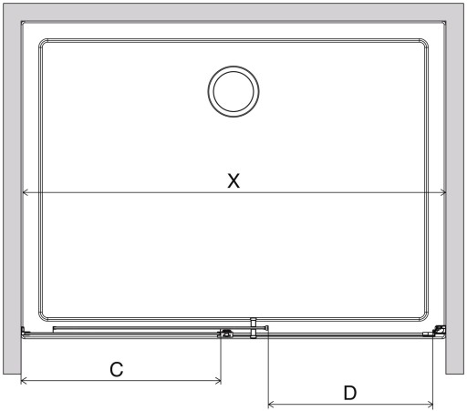 - Drzwi posiadają mechanizm przesuwu oparty na torze górnym. Szerokość wejścia do wnętrza prysznica po całkowitym rozsunięciu skrzydła wynosi: 390 mm
