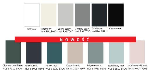 - Pozostałe kolory wg palety RAL i NCS za 5 % dopłatą.