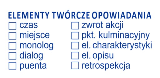 Na tej aukcji zamówisz pieczątkę automatyczną z zatyczką WAGRAF 4s lub b4s o treści ELEMENTY TWÓRCZE OPOWIADANIA ............