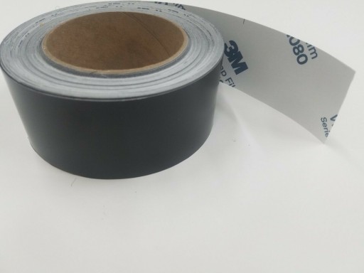 Folia taśma na listwy chromowane czarny mat - 3M M12 o wymiarach 5 cm x 1 m, maksymalnie 10 m w jednym kawałku.