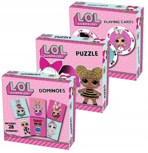 Wyjątkowy zestaw 3 gier gwarantuje jeszcze więcej udanej zabawy! W tym - Karty Jumbo, w wyjątkowym okrągłym kształcie, tekturowe Puzzle (jak z sezonu Psiego Parolu lub Hatchimals) oraz Domino. Taki zestaw to godziny świetnej zabawy w najmodniejszym towarzystwie L.O.L. Wymiary: 41,3 x 60,0 x 203,2 mm Dla dzieci w wieku: 4+