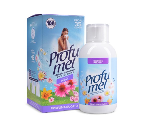 Perfumy PROFUMEL PEONY do prania o przyjemnym trwałym zapachu. W odróżnieniu od ulotnego zapachu płynów zmiękczających Perfumel utrzymuje się na ubraniach nawet przez 16 tygodni.