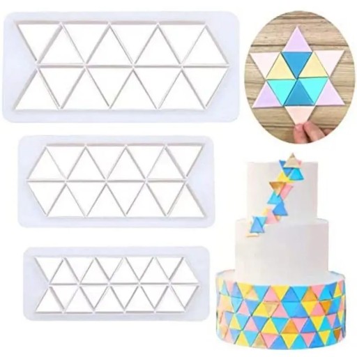 - foremki wykrawacze do dekorowania tortów, ciast z masy cukrowej, marcepanu w kształcie trójkątów