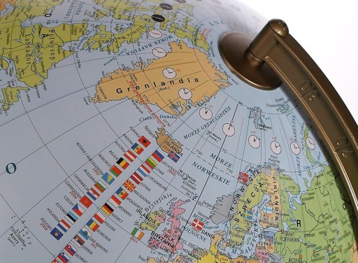 Na globusie zaznaczono m.in:
