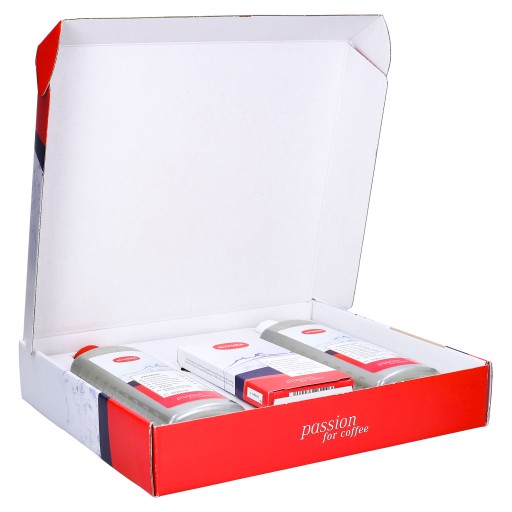 Zestaw do czyszczenia ekspresów marki Nivona przeznaczony do w pełni automatycznych ekspresów do kawy. W skład zestawu czyszczącego wchodzi płyn odkamieniający Nivona o pojemności 500 ml, płyn Nivona do czyszczenia systemu mlecznego o pojemności 500 ml oraz 10 sztuk tabletek do czyszczenia ekspresu.