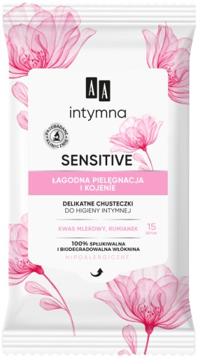 AA Sensitive Delikatne chusteczki do higieny intymnej łagodna pielęgnacja i kojenie 15 szt.