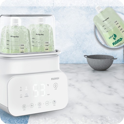 Dzięki wbudowanej funkcji rozmrażania w Neno Vita, możesz rozmrozić np. mleko, które przygotowałaś dla swojego Maluszka w specjalnych woreczkach Neno. Wystarczy włożyć zamrożone jedzenie do zbiornika i wybrać opcję rozmrażania na panelu wyświetlacza.