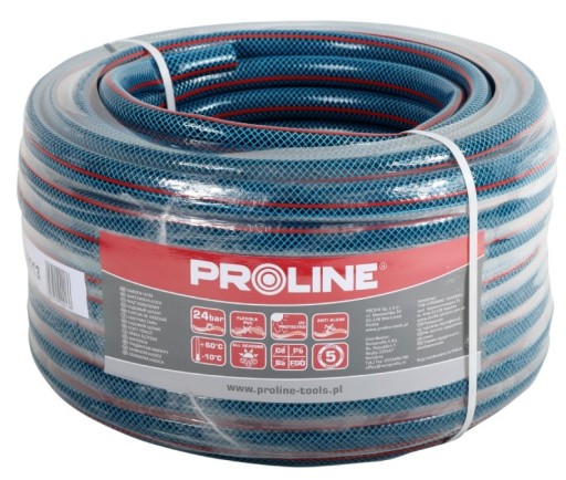 Węże ogrodowe marki Proline z serii BLUEBOS PLUS to produkty czterowarstwowe wykonane z elastycznego PCW na bazie suspensyjnego polichlorku winylu oraz innych komponentów, dodatkowo wzmocnione obwojem tekstylnym.