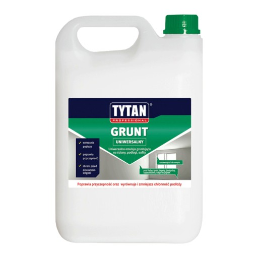 TYTAN UNIGRUNT - grunt uniwersalny, przeznaczony do malowania wewnątrz i na zawnątrz. Redukuje chłonność podłoża, wzmacnia je i.zwiększa przyczepność do podłoża.