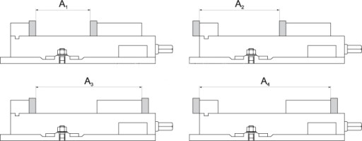 Wymienne wkładki szczękowe można przykręcać z obu stron szczęk, co oznacza bardzo duży zakres mocowanych elementów. Standardowy układ umożliwia zwykłe osadzanie. Natomiast przestawienie wkładek na drugą stronę szczęki stałej i ruchomej lub z osobna zwiększa zakres ścisku o ich długość, jednak w takim układzie kłaść można jedynie płaskie przedmioty, jak proste blachy, czy inne wąskie materiały.