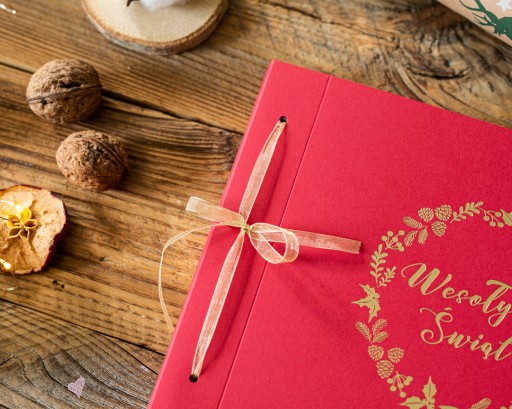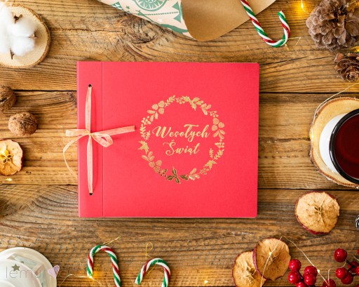 Dream GLAM Book - Album tradycyjny w czerwonym kolorze, z napisem "Wesołych Świąt", na zdjęcia wklejane.