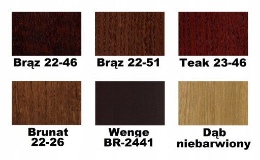 - Pozostałe kolory wg palety RAL i NCS za 5 % dopłatą.