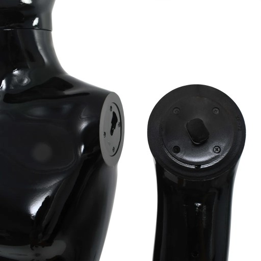 Manekin składa się z 5 części: głowy, tułowia, nóg, lewego ramienia i prawego ramienia. Głowę i ramiona można obracać o 360°, co umożliwia ustawienie manekina w różnych pozycjach. Całe ciało wykonane jest z lekkiego i wytrzymałego polipropylenu. Szklana podstawa z aluminiowym stojakiem zapewnia stabilność i umożliwia prezentację obuwia.