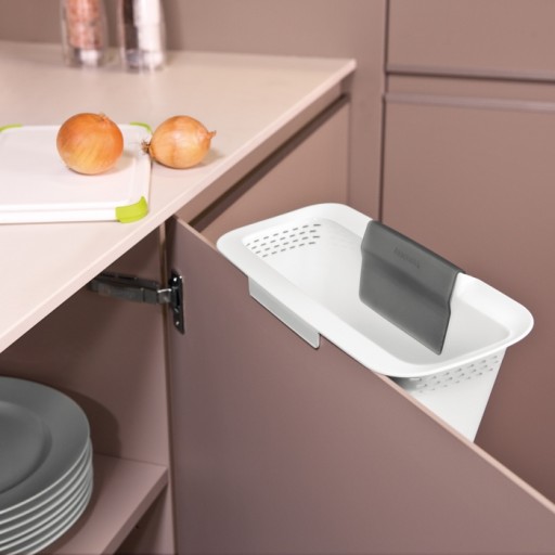 Doskonały do zgarniania resztek jedzenia i śmieci z blatu kuchennego oraz ich przenoszenia do kosza. Przeznaczony do zawieszenia na drzwiach szafki. Można myć w zmywarce.