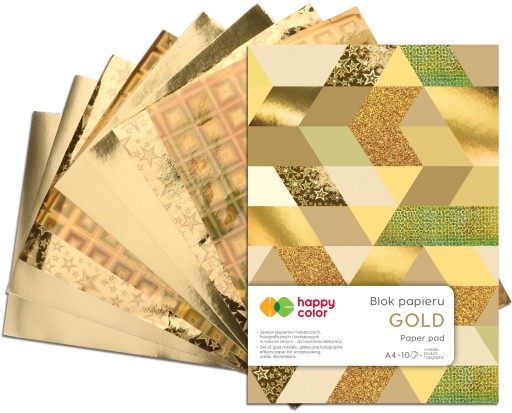 Happy Color GOLD БУМАГА А4 150-230г 10 листов, БЛОК МЕТАЛЛИК