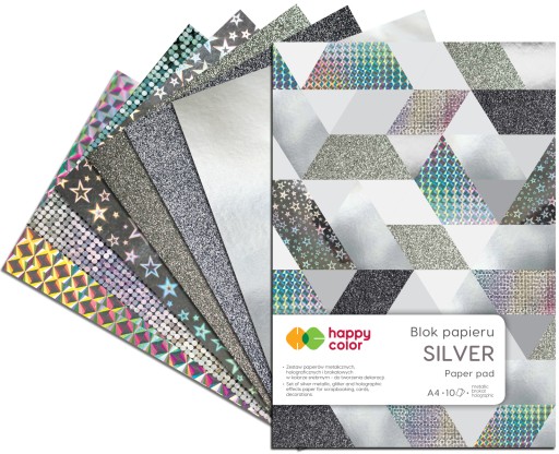 Happy Color СЕРЕБРЯНАЯ БУМАГА А4 150-230г 10 листов, БЛОК МЕТАЛЛИК